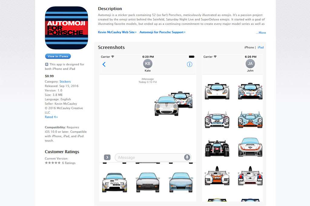 For iOS 10, a new app dubbed Automoji has just landed on the App Store that includes 52 emojis of the most iconic Porsche models of all time.