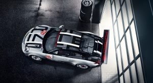 The use of both steel and aluminum in its construction – minus anything in the cabin that isn’t strictly necessary – helps keep weight down to 1,200 kilograms (2,645 lbs). Porsche still found room for all the requisite safety equipment though, including a full roll cage, a bucket seat reinforced around the head and shoulders, and a larger emergency hatch in the roof.
