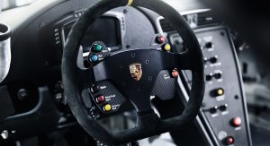 In its butt sits a 4.0-liter naturally aspirated flat six – just like the latest GT3 RS – but actually producing a little less power: output is rated at 485 hp instead of the road-going RS model’s 500. On-track performance promises to be more extreme, however, thanks to increased downforce from its massive six-foot-wide rear wing and big fat racing slicks measuring over a foot wide at the back.