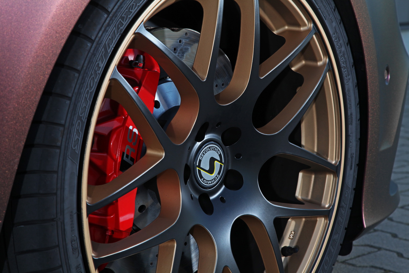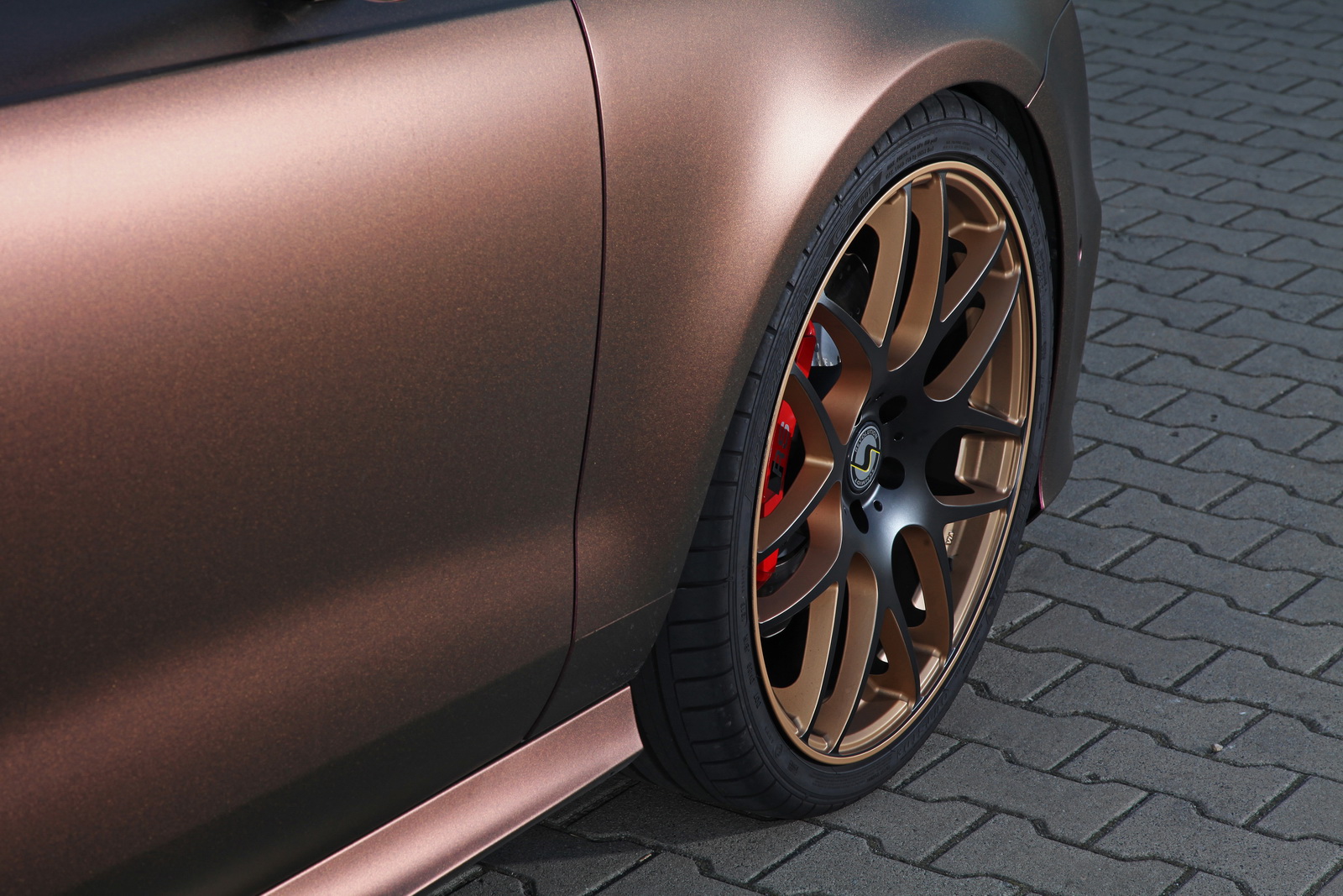 Highlighting the car’s performance add-ons is the special edition “Sparkling Berry” vinyl from Cam Shaft. Described as the “icing on the cake”, the wrap changes from brown to yellow and from gold to purple (depending on the light) for a unique appearance.