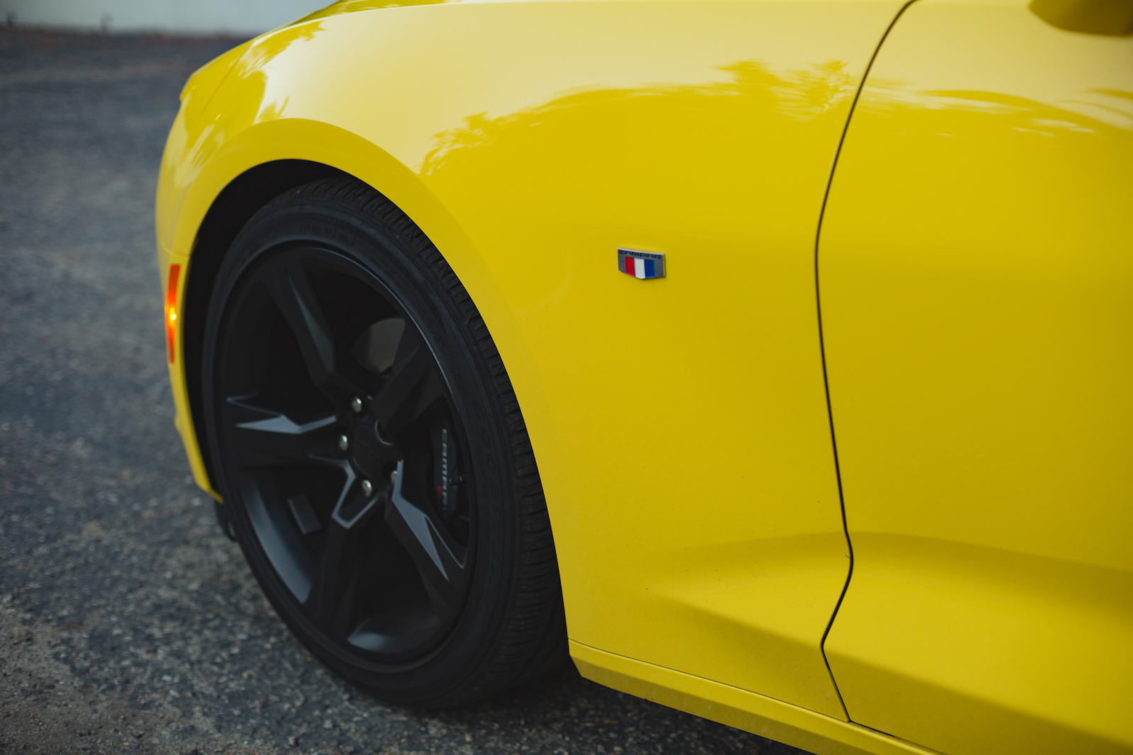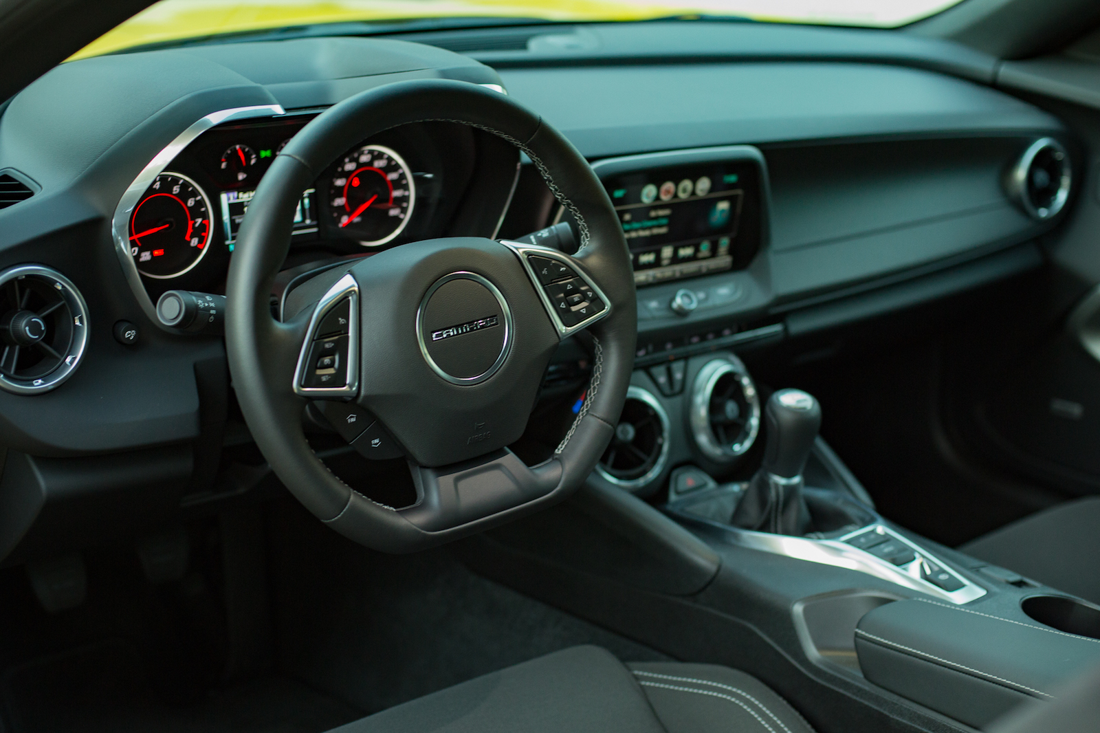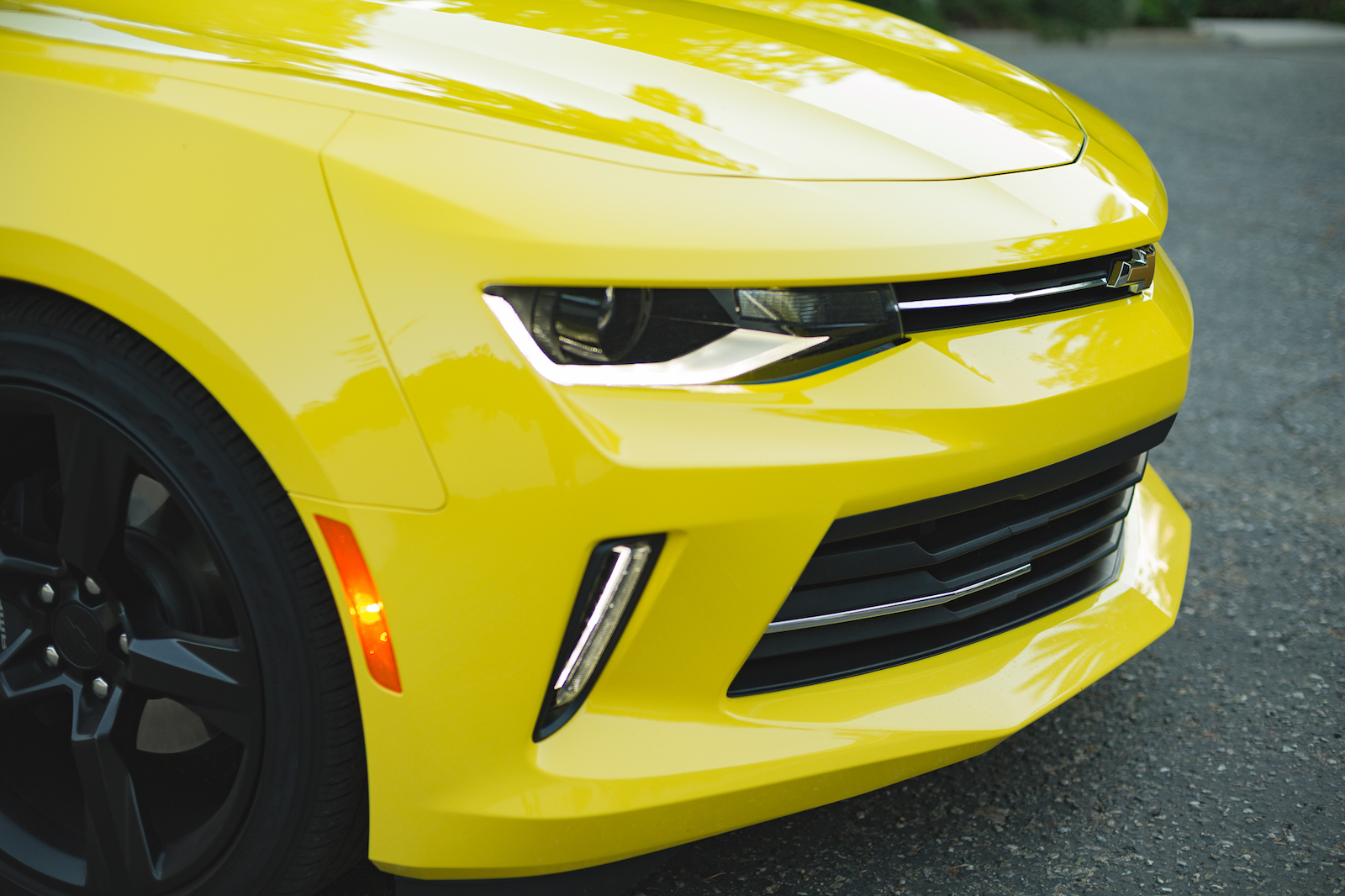 Partly because it did, and the big weight savings and trimmer dimensions over last year’s car pays dividends in more than just looks. Skip the Bumble Bee-baiting paint and the Camaro cuts a surprisingly sophisticated profile. Upsized wheels are required to fill out the wheel arches, but doing that makes the Camaro look like an up-to-date sports car, rather than a ’70s throwback, something you could probably accuse the Ford Mustang of and certainly the Dodge Challenger.