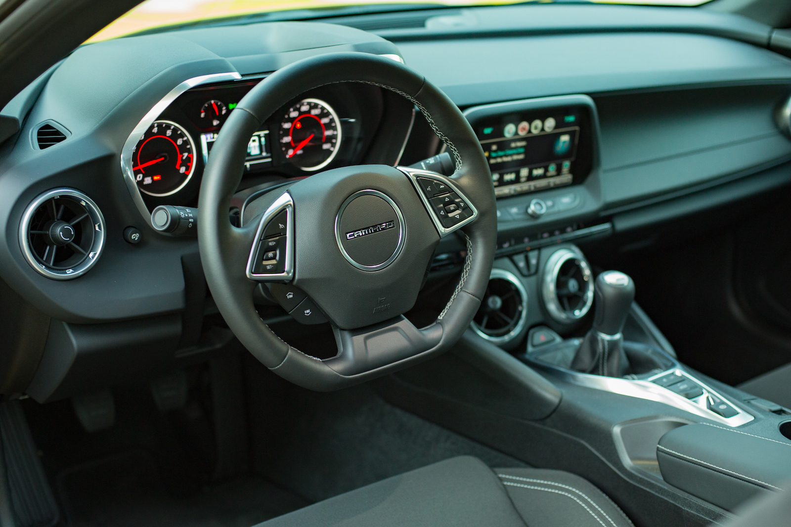 The six-speed manual’s shift action is surprisingly high effort and first-to-second took some practice to make smooth, an issue I also had with the Chevy SS. But the turbo’s flexibility made shifting less necessary than it would be in the V6 Camaro. The optional eight-speed automatic may be the more refined choice, but I struggle to think it’s worth the extra cost. And it’s not like the turbo Camaro is exactly thrilling to drive, even with the manual. Toggle through the modes and you get some sound reminiscent of a burbling V8, but there’s more turbo whoosh than anything else. There’s no V8 rubble, only a turbo four throbbing that feels old-school Volvo.