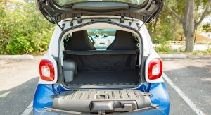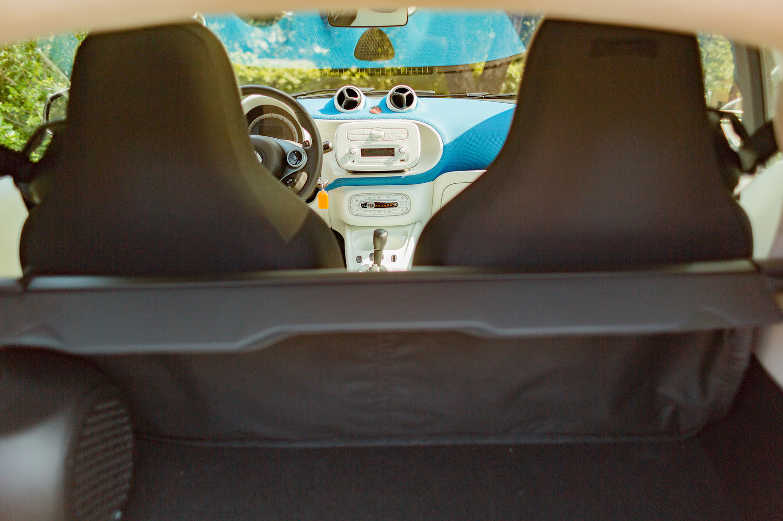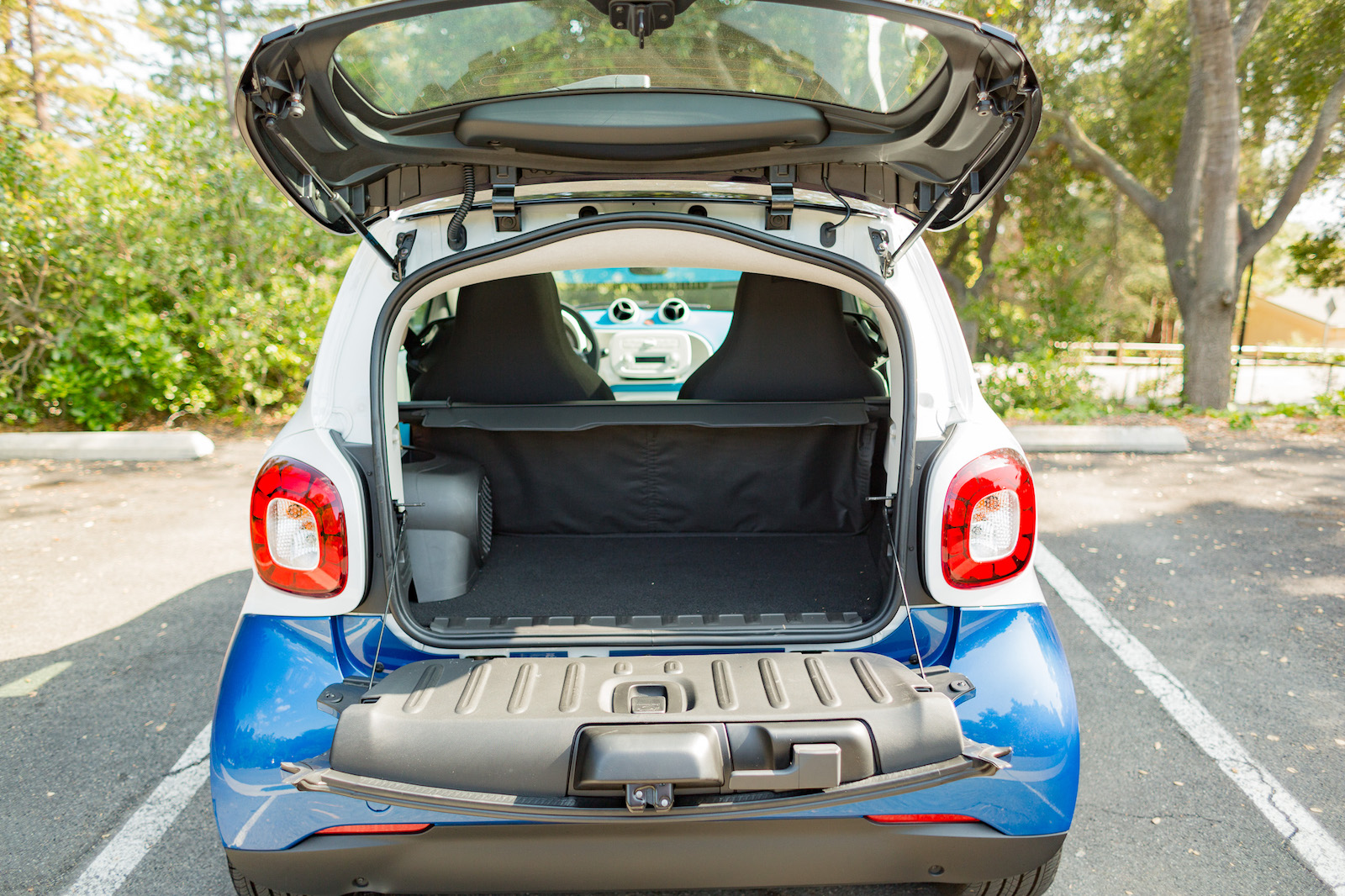 Forget about luggage space. The opening is no longer square, so it limits what kind of things you can put in. Plus, the optional JBL subwoofer takes up at least a third of the overall space, which meant my friend had to ride with a duffel bag in his lap. It probably wouldn’t be able to fit the 500 issues of my high school’s newspaper I once put in a previous-gen Smart, then.