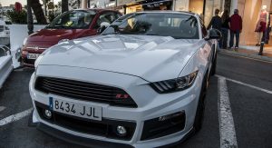 According to Manu25HLV of Autogespot, this particular car seen resting peacefully in Marbella, Spain, is a 2015 Mustang with a Stage 1 Roush pack.