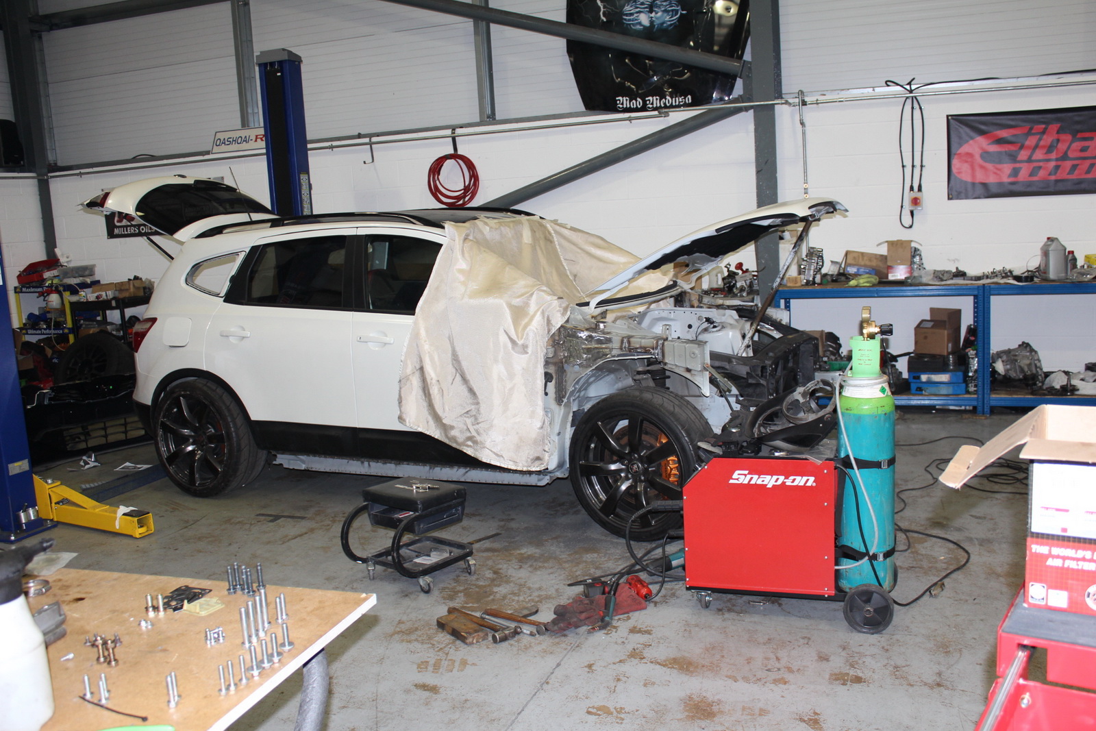Besides its staggering output, this previous-gen Nissan Qashqai also features two Bugatti Veyron fuel pumps, two Garrett GT35 Series turbochargers, BoostLogic injector intake manifold, SVM 102 mm performance exhaust system, Dixcel performance brakes, and KW coilover suspension. The exterior is adorned with SVM decals and the interior has been upgraded with a GT-R dashboard and seats.