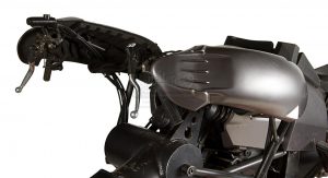 Underpinning the unique three-wheeler is a bespoke chassis and a 750cc Honda engine. Drive is sent to the ground thanks to sticky 31-inch Hoosier racing tires and the Batpod is made particularly light due to its heavy use of fiberglass and lightweight plastic. While it looks like a prop, it was completely functional on set and even has front and rear brakes and foam padding for the seat and knee rests.