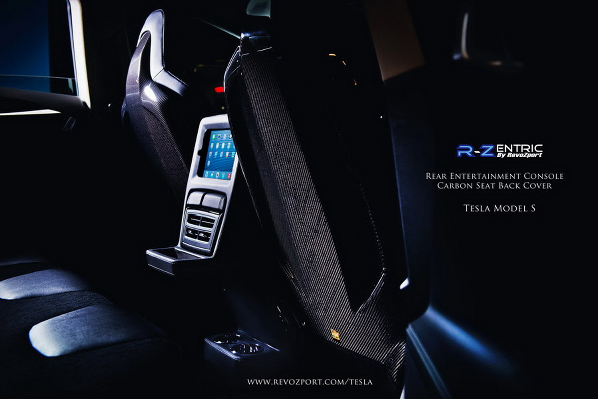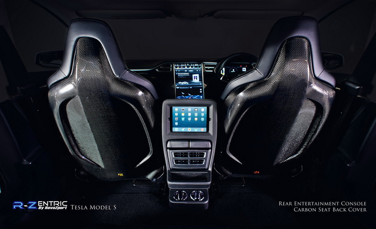 The tuner created a subtle yet very brawny R Zentric visual kit for the electric car, consisting of a front splitter, rear diffuser, and new side skirts. Unlike the Model S’ design elements, which were planned to offer a low drag coefficient, RevoZport’s R Zentric package was said to have been conceived to act as a ground effect unit, allowing higher downforce. Additionally, fender flares were added, as well as a carbon trunk spoiler.