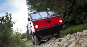 The Ox is shipped packed flat like a piece of furniture from IKEA. It features high ground clearance but only two driven wheels to keep it mechanically as simple as possible for ease of maintenance and to keep costs down. The whole thing is about the size of a Toyota RAV4, but can carry nearly two tons of cargo – which is more than most full-size pickups can manage. Power comes from a 2.2-liter diesel rated at 99 horsepower and 229 lb-ft of torque, mated to a five-speed manual transmission. With a load volume of almost 250 cubic feet, it can haul eight 44-gallon drums, three Euro-standard pallets, or 13 people. That’s a whole lot of capability, but even more impressive is how the Ox is built.