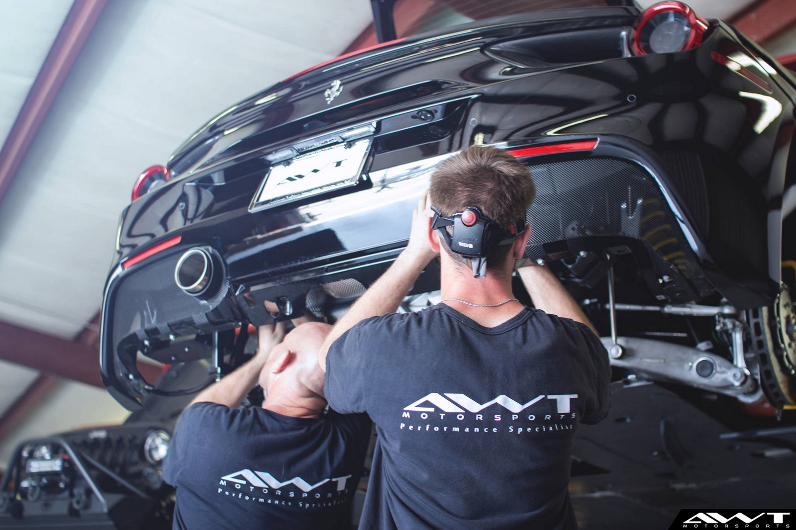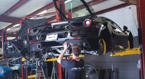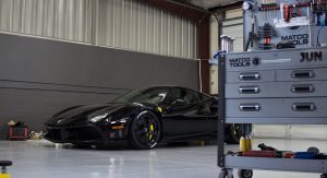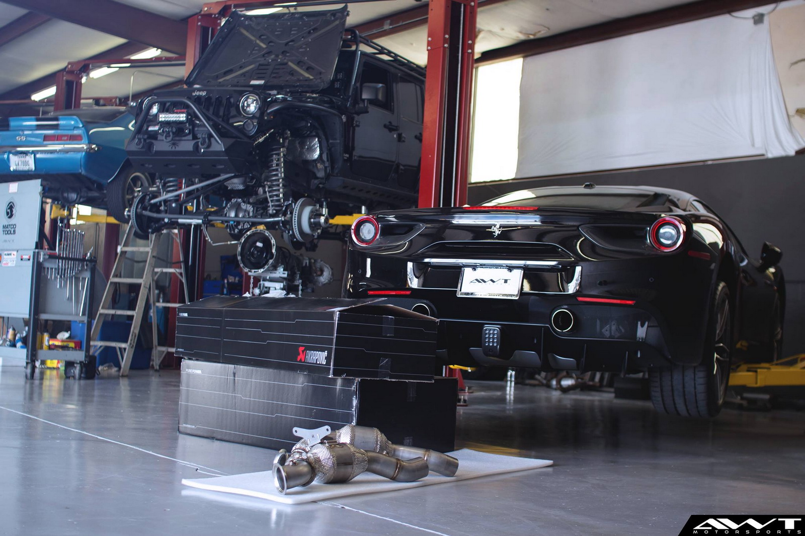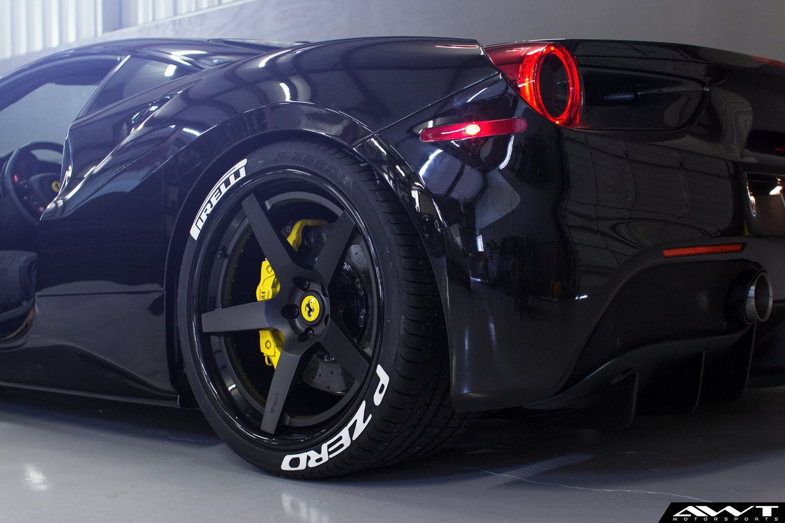 AWT Motorsports’ 488 GTB comes with a few more mods, but nothing outlandish. As you can see, the car has been lowered and wears HRE Performance Wheels wrapped in Pirelli P-Zeros, which are somewhat reminiscent of the Speedline/OZ center-lock racing rims found in the F40 LM.