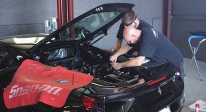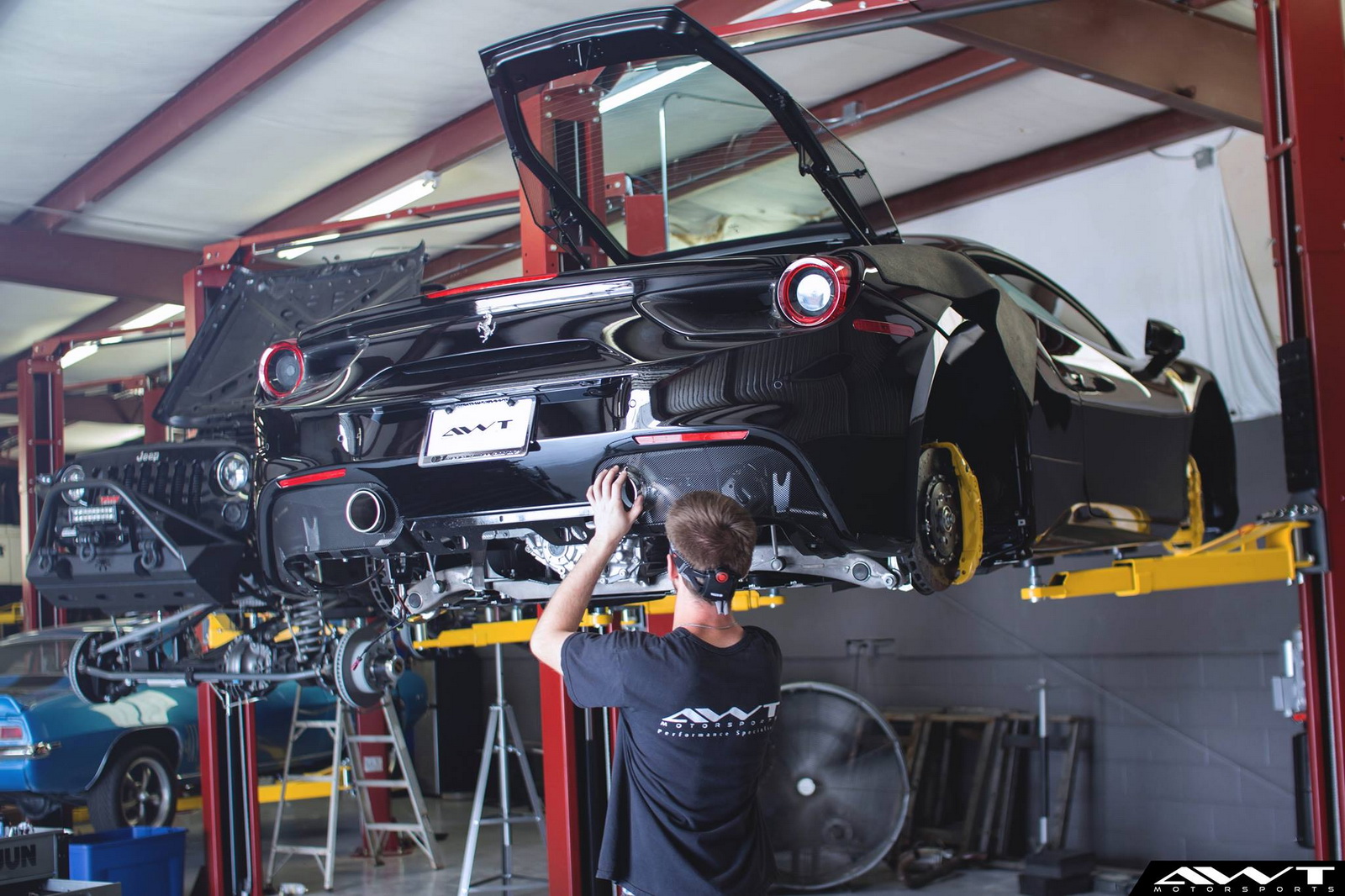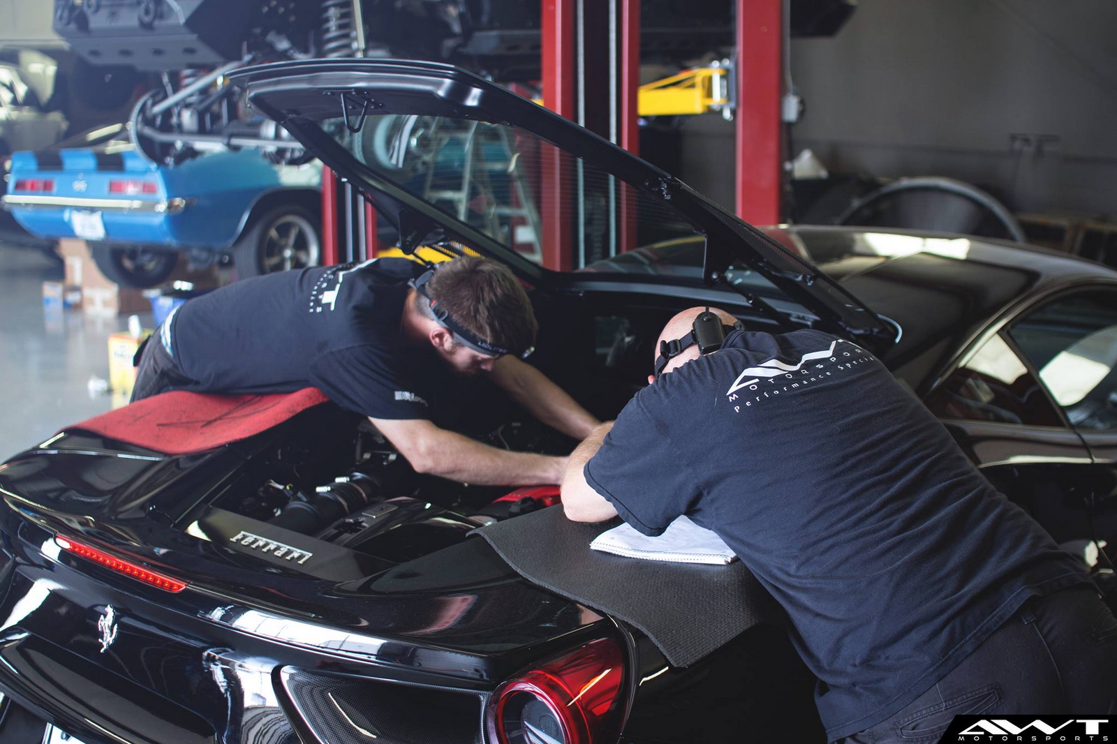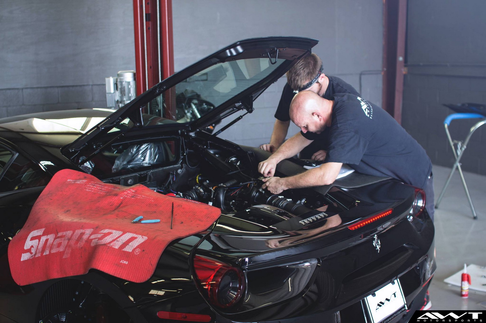 AWT Motorsports’ 488 GTB comes with a few more mods, but nothing outlandish. As you can see, the car has been lowered and wears HRE Performance Wheels wrapped in Pirelli P-Zeros, which are somewhat reminiscent of the Speedline/OZ center-lock racing rims found in the F40 LM.