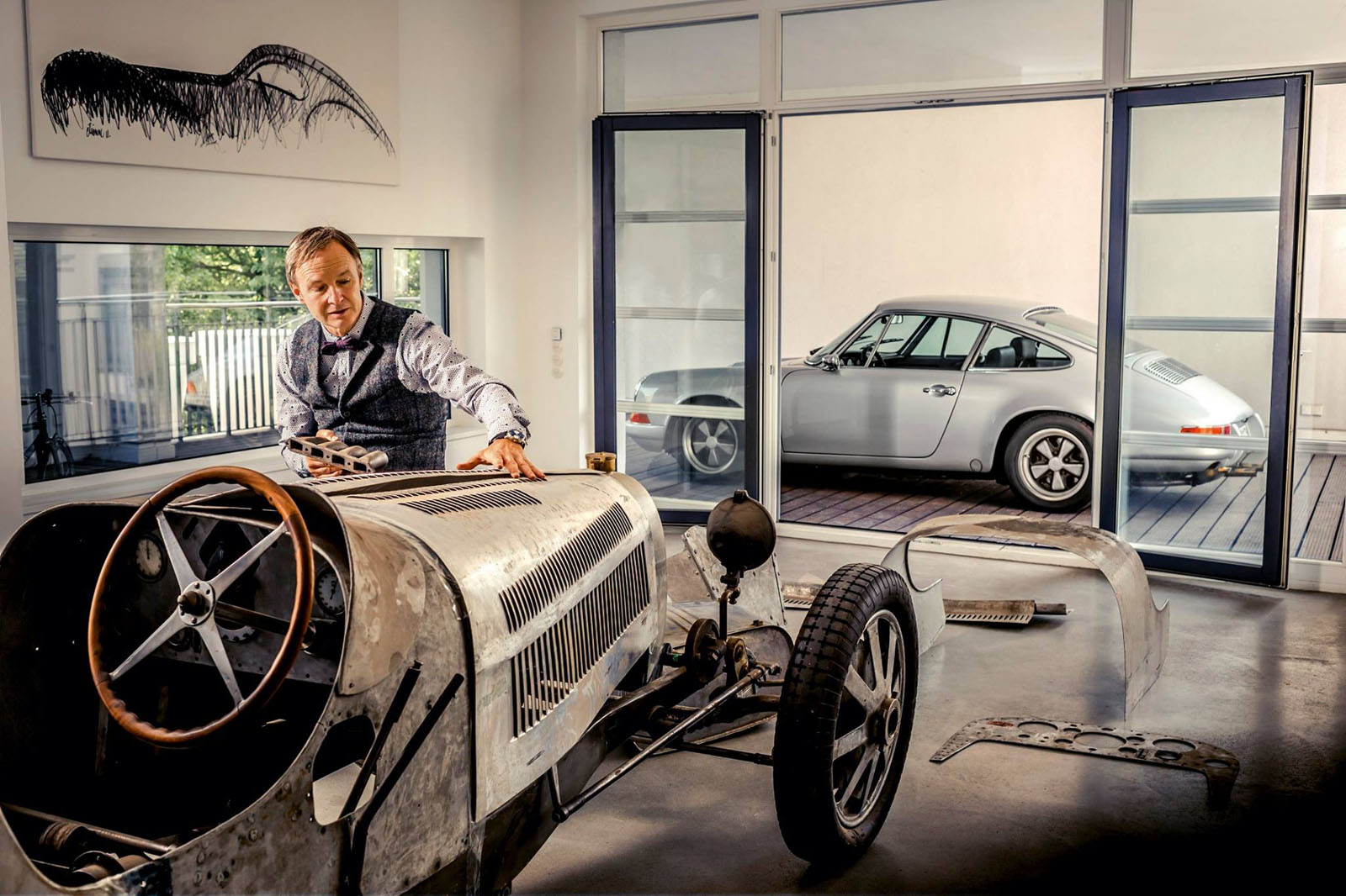 Anscheidt is the chief designer at Bugatti. He has been for the past twelve years, having previously lent his pen to parent company Volkswagen in Spain and in Germany (after an earlier career as a motorcycle stunt rider). During the week, he drives a VW Golf GTI. But on the weekends he’s all about his stripped-out 1981 Porsche 911 SC.