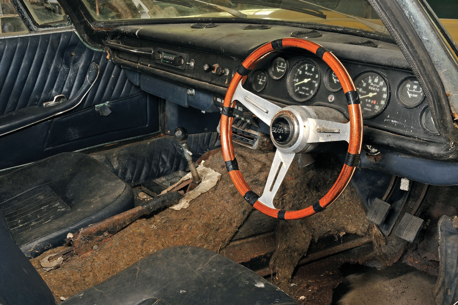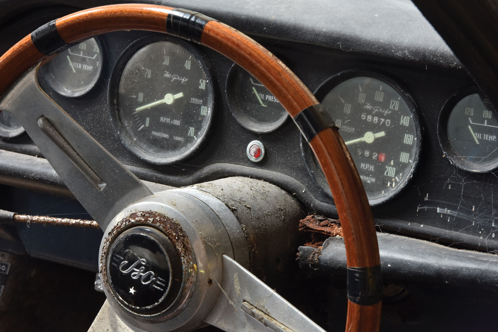 Of the 413 Grifos made in all, this 1967 Series I example is one of just 34 in right-hand drive. It was acquired by its current owner in 1986, complete with a 327-cubic-inch Chevy V8. He sent it to be repainted from yellow to burgundy (like the London show car he had owned previously), but the work was never carried out, and it has sat in storage for the 30 years since.