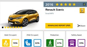 Dummy readings have piled up to 82 percent for Child Occupant, 67 percent for Pedestrian and 59 percent in the Safety Assist category. The tested model was a five-seater 1.5 dCi weighing 1,517 kg (3,344 lbs), but the scores apply to all Scenics, including the seven-seater Grand Scenic.