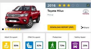 When tested with the optional Safety Sense package, the 2016 Toyota Hilux is also a five-star vehicle, but take the bundle of safety features away and go for the standard model and you’ll probably be surprised to learn that the pickup truck loses two stars on the way.