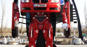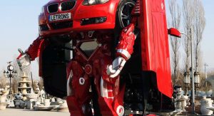 The company opted to dress their robot with a BMW E90 3-Series body which can be remotely controlled both in its car- and robot-forms.