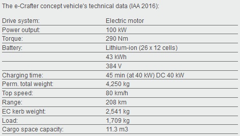Based on the latest generation model and unveiled at the 2016 IAA Commercial Vehicles Show in Hannover, Germany, the van previews a production model set to arrive next year uses an electric motor, rated at 136 PS (134 HP) and 290 Nm (214 lb-ft) of torque.