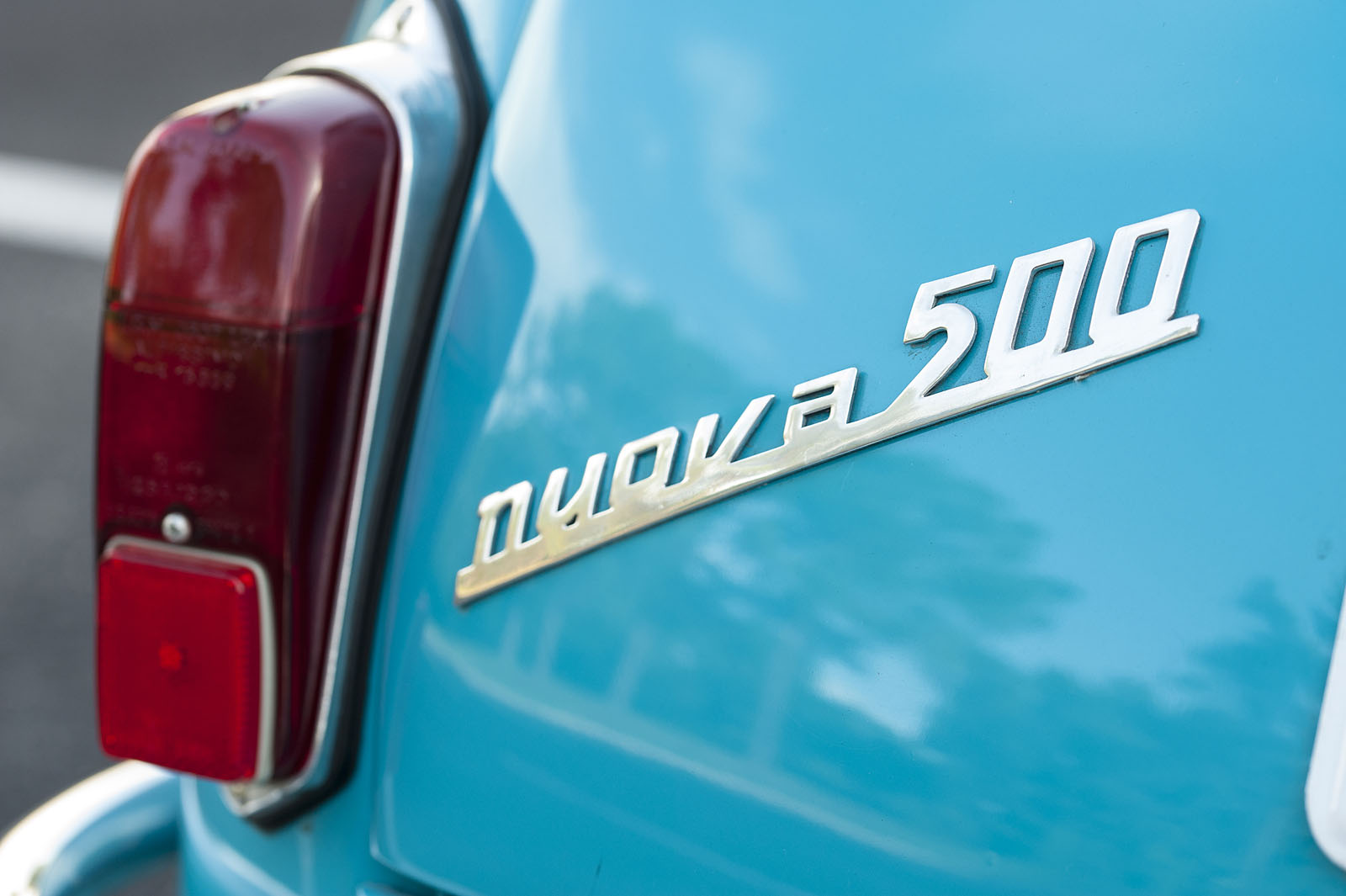 This particular example looks like one of the most charming we’ve seen yet. Like most, it was converted by Ghia – one of Italy’s vaunted independent carrozzeria (prior to being bought by Ford) – and comes in just the right shade of azure blue. It’d be just the thing to keep at our fantasy second home on the Amalfi Coast, but it’s even registered for use on American roads, complete with Florida plates that read “JOLLIE.”