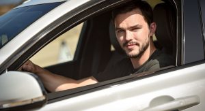 To help promote his new film Collide, Hoult, who is a Jaguar ambassador, jumped behind the wheel of both a new Jaguar XF and F-Type.