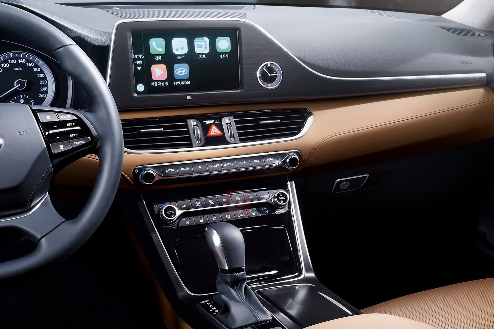 The new Azera not only looks more handsome and upscale than the current car on the outside, but inside too, especially in the grade featured in the release photos that boasts a partially leather cladded dashboard and door panels.