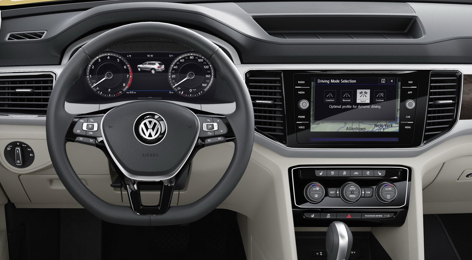 At launch, the Atlas will be offered with two powertrains. The first, a 2.0-liter turbocharged four cylinder, delivers 238 hp and is paired to an eight-speed automatic transmission. For those looking for some added grunt, a 3.6-liter six-cylinder with 280 hp is also available with the same eight-speed ‘box.
