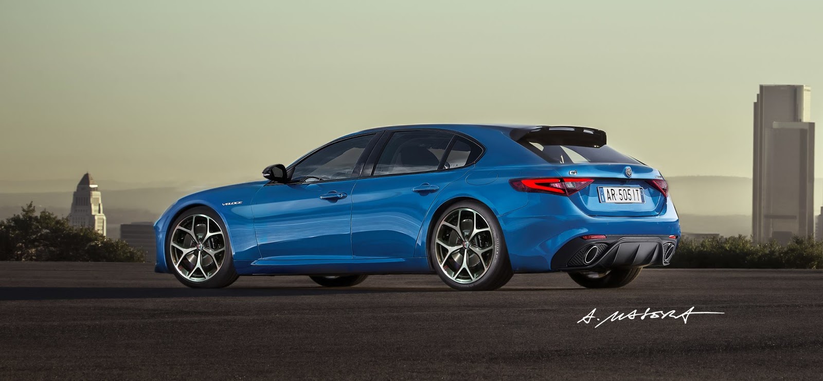 Alessandro has based his rendering around the recently-introduced Giulia Veloce and gone down the route of style and performance over space and practicality. The roofline has only been slightly lengthened and a chunkier C-pillar imagined. Additionally, there’s a small spoiler at the top of the steeply raked rear window.