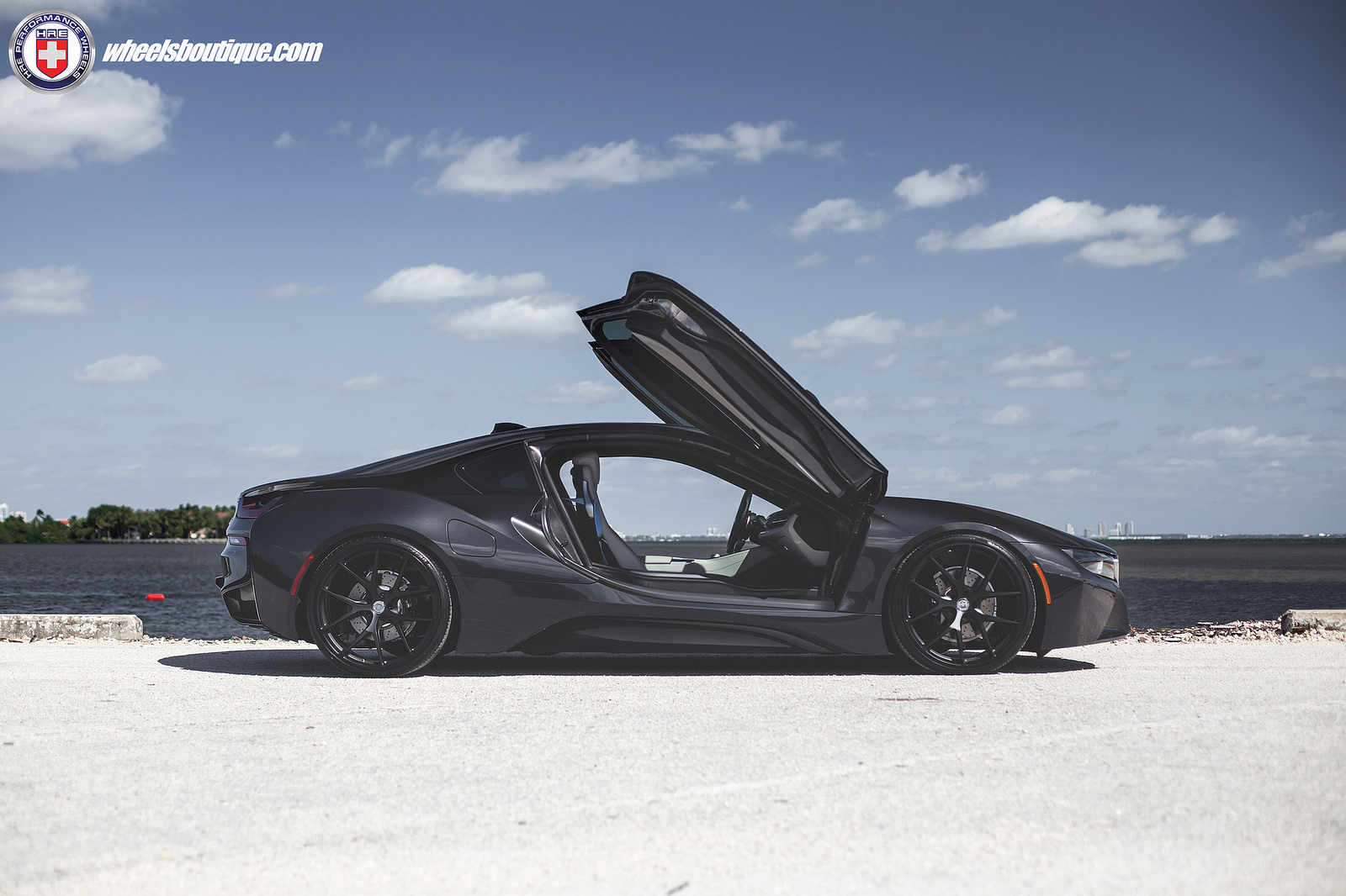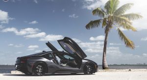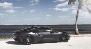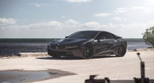 The wheels in question come from HRE and were installed by Florida tuning company Wheels Boutique. While we’ve become accustomed to seeing bronze and gold wheels adorning all manner of cars in recent times, the simple black finish of these complement the i8’s paint scheme perfectly and help give it an undeniably stealthy appearance.