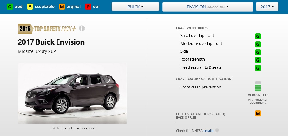 Built in China and tested in the US of A, the 2017 Buick Envision has managed to score a Top Safety Pick+ from the Insurance Institute for Highway Safety (IIHS).