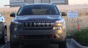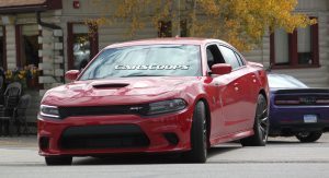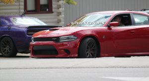 The sedan was spotted together with various versions of the Dodge Challenger and Charger, as well as a Jeep Cherokee, a couple of Renegades, and a Ram ProMaster City – the latter two of which, at least, are packing some sort of modified exhaust system. Read into those what you will, but the prospect of a more potent version of the 300 than the 5.7-liter Hemi currently available Stateside does get us daydreaming of a Cadillac CTS-V rival from Auburn Hills.