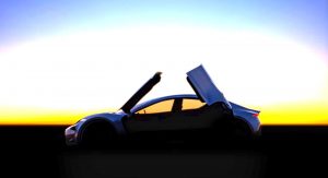Granted, the teaser isn’t that clear, but it shows a four-door model (aimed at Tesla’s Model S), boasting front and rear butterfly doors, that would make the Model X’s falcon wings look plain. According to Fisker, the doors are newly-developed for easier egress and ingress.