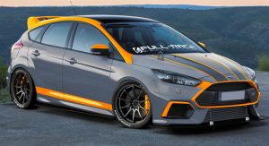 Also on the cards is a customized Focus RS painted grey with bright orange accents. It has a beefed up turbocharger from BorgWarner, intercooler, cold air intake, methanol injection, Wavetrac front differential and 1-piece carbon fiber driveshaft. Like the others, it also has coilover suspension, aftermarket wheels and some interior touches.