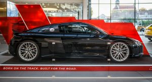In comparison, the R8 V10 plus weighs 1,630 kg (3,593 lbs), so you can probably imagine just how quick the race car is around a track compared to the road car – which is extraordinarily fast in its own right.