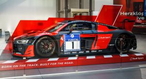 On the other hand, the R8 LMS comes with a modified version of the V10 plus’ 5.2-liter V10, putting down 585 PS (577 HP) with the help of a new six-speed sequential transmission. The LMS also features a 39% increase in frame rigidity, a lighter chassis and an intelligent material mix that dropped its weight to no more than 1,225 kg (2,700 lbs).