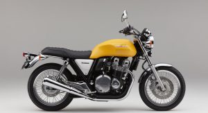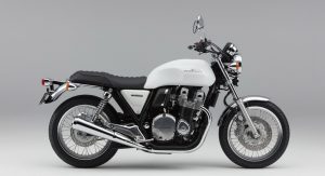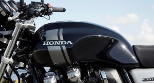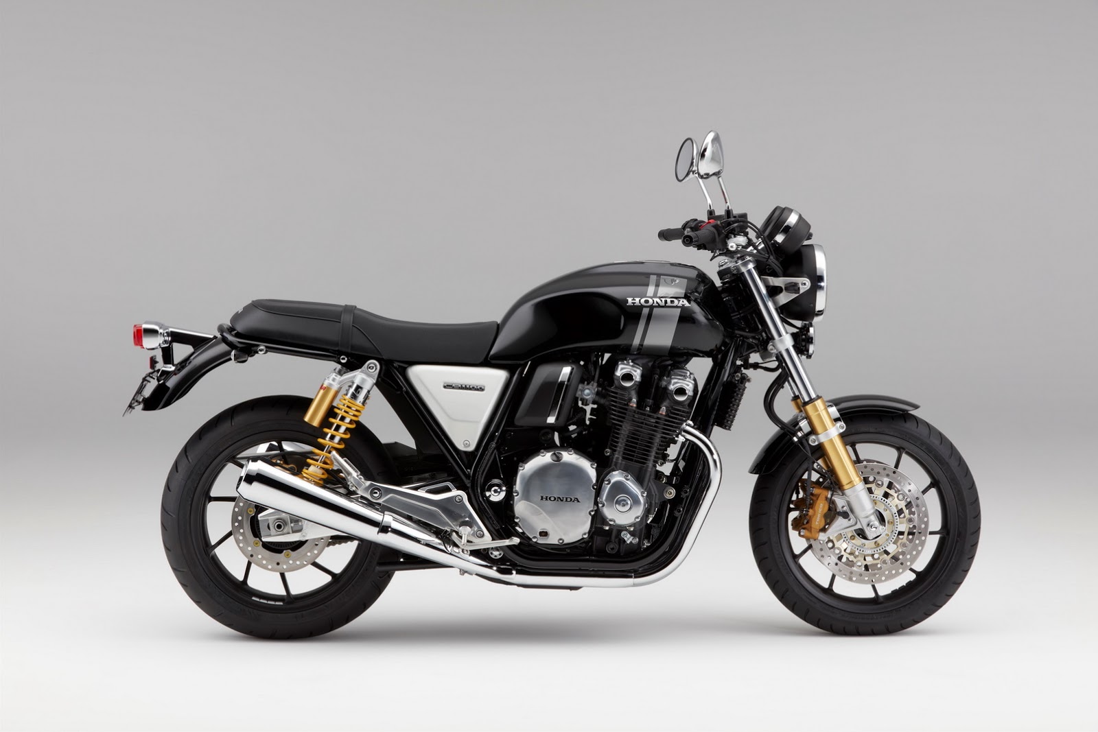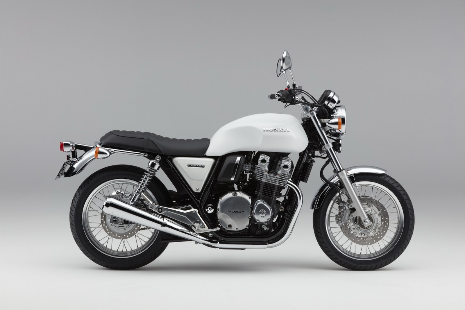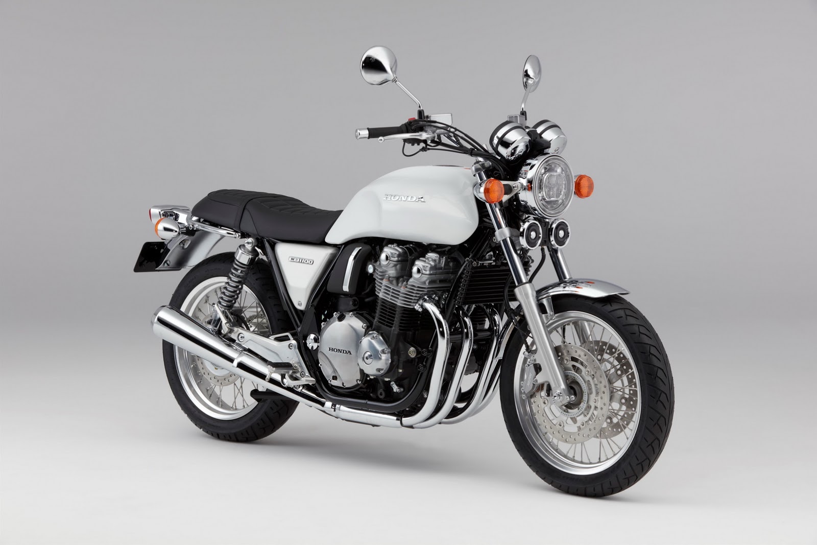 While the CB1100 EX looks more like a classic model thanks to its 40-spoke 18″ zinc-coated stainless steel wheels, the RS model is more sporty with new cast 17″ aluminum wheels fitted with wide, sporty tires, a more upright caster angle and lower handlebars.