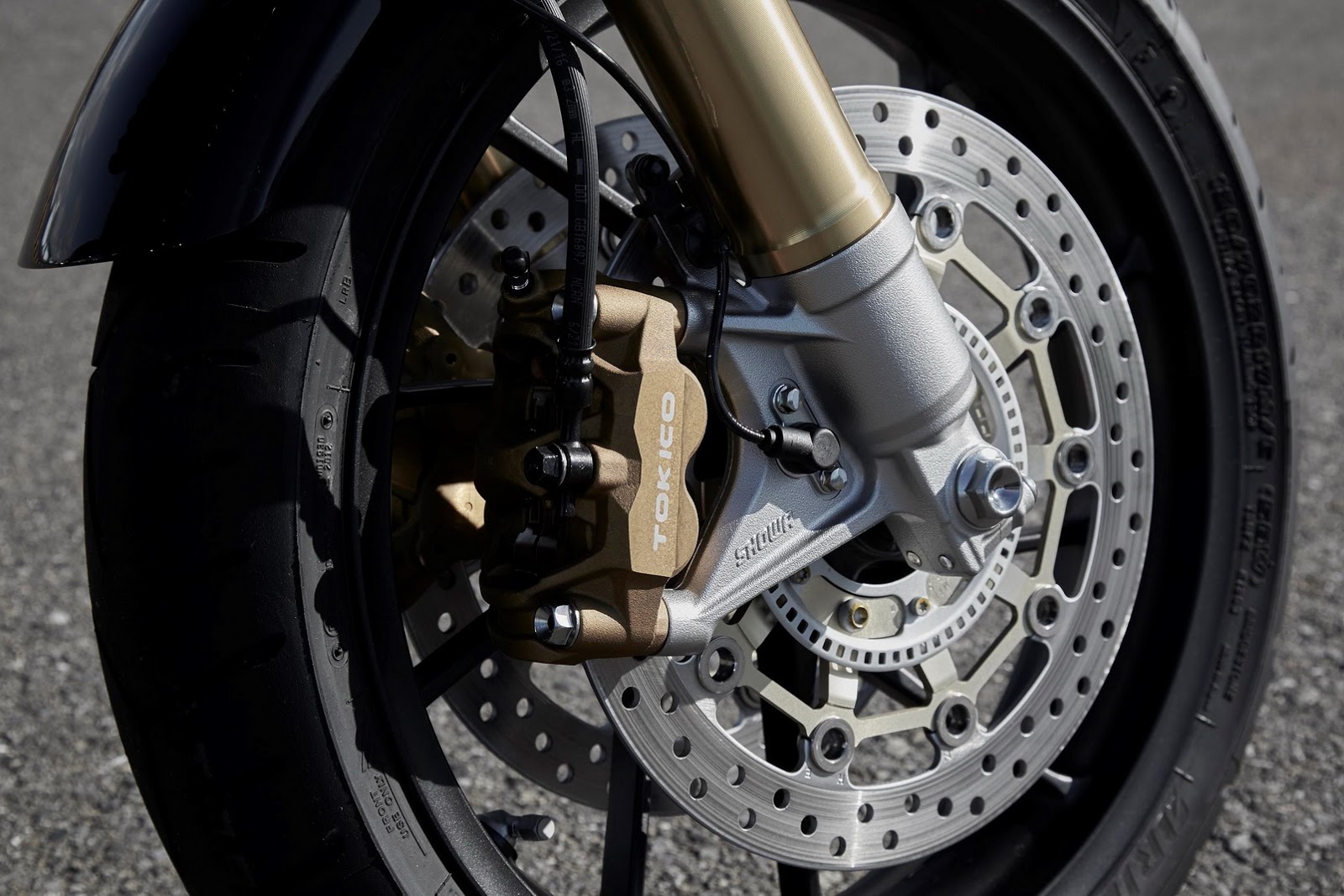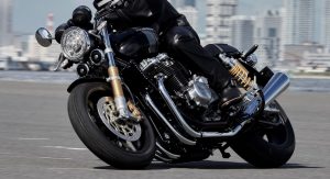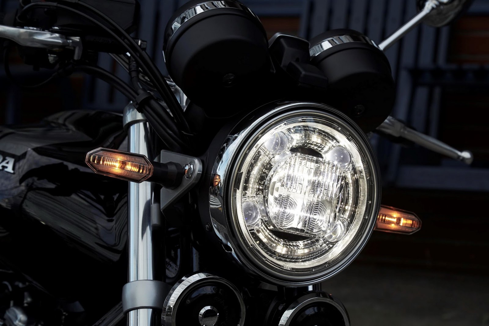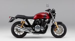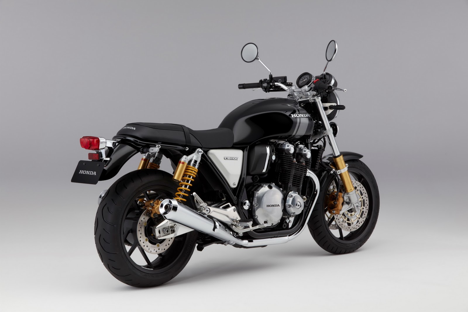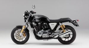 While the CB1100 EX looks more like a classic model thanks to its 40-spoke 18″ zinc-coated stainless steel wheels, the RS model is more sporty with new cast 17″ aluminum wheels fitted with wide, sporty tires, a more upright caster angle and lower handlebars.