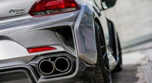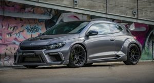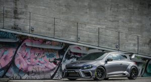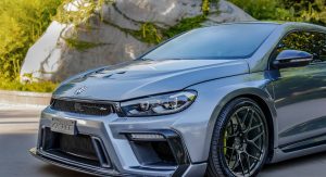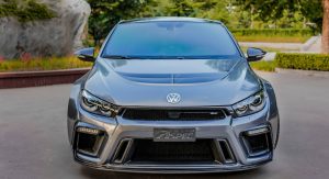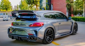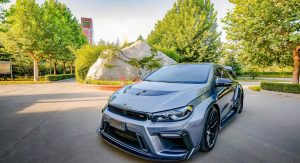 Seemingly taking inspiration from the world of rallying, the Hong Kong-based company has outfitted the Scirocco R with a comprehensive widebody kit. Alongside the flared wheel arches, the kit includes a bespoke front fascia with huge air intakes, a blacked-out grille, LED daytime running lights and an ankle-snapping splitter.