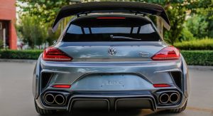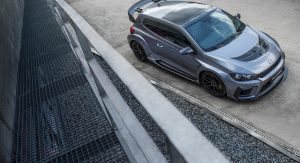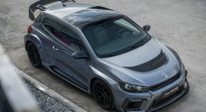 The front and sides of the car are certainly bold but it is the rear-end where the rally car-inspiration has been taken to an entirely new level. Most notably, the Scirocco has been fitted with a towering roof-mounted rear wing that looks like it came straight off a WRC car. The wing alone changes the entire look of the rear-end and has then been complemented with new quad tailpipes, a distinctive diffuser and a beefed-up bumper with triangular air vents.