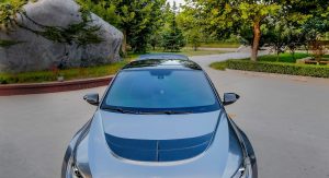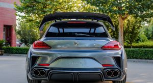 Also up front, the model has been fitted with a new bonnet incorporating prominent air vents to extract hot air from the engine bay. The profile meanwhile is characterized by extended skirts and a set of custom wheels.