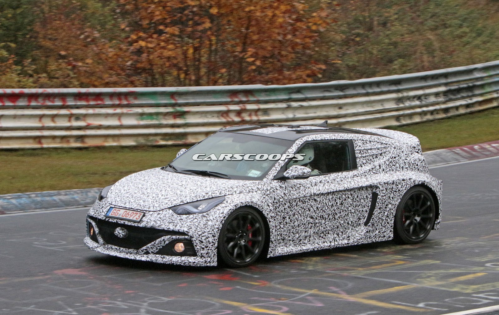 Your eyes are not fooling you; our spies spotted Hyundai testing a real version of the mid-engined RM16 N Concept hatchback at the Nurburgring.
