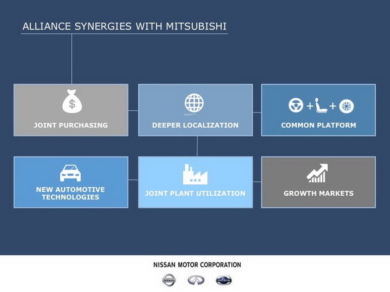“The combination of Nissan, Mitsubishi Motors and Renault will create a new force in global car-making. It will be one of the world’s three largest automotive groups, with the economies of scale, breakthrough technologies and manufacturing capabilities to produce vehicles to serve customer demand in every market segment and in every geographic market around the world“, said Nissan Chairman and CEO Carlos Ghosn. “We are committed to assisting Mitsubishi Motors as it rebuilds customer trust. This is a priority as we pursue the synergies and growth potential of our enlarged relationship.“