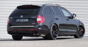 JE Design’s personalization program for the Octavia RS230 ups the ante to 300 PS and 430 Nm (317 lb-ft) of torque, helping it hit the 100 km/h mark in 6.6 seconds, with the top speed raised to 258 km/h (160 mph).