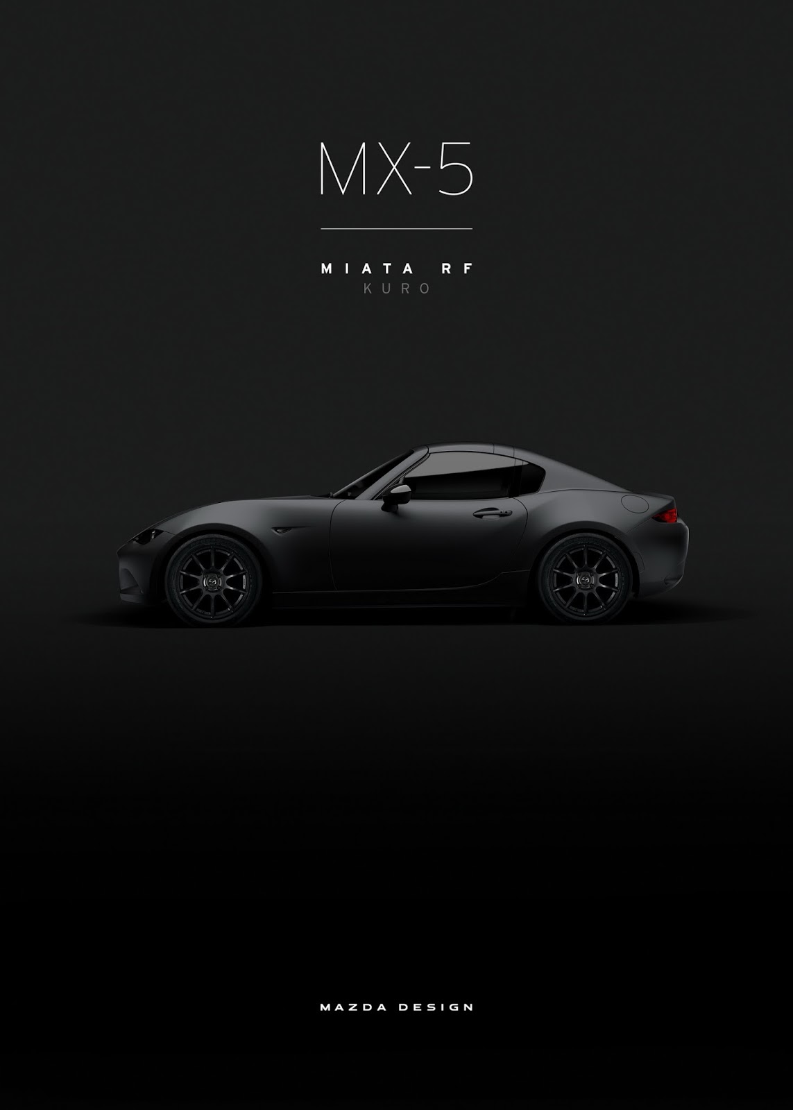 The next concept is the RF Kuro and it’s based on the Retractable Fastback version that will hit the streets on early 2017. Finished in a semi-matte charcoal metallic developed in-house (Kuro means charcoal in Japanese), the second concept comes fitted with a set of 17in RAYS forged wheels dressed with sticky tires and the same adjustable suspension used in the MX-5 Cup series.