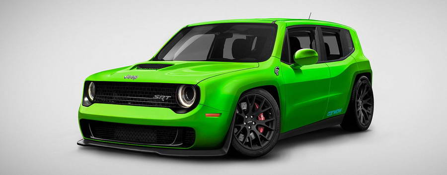 Our personal favorite. Imagine picking the smallest Jeep and finding a way to shoehorn the Hellcat‘s 707 HP supercharged V8 into its compact body. Then slam it down to the ground, so the little Renegade doesn’t do a wheelie when you mash the right pedal, fit huge wheels/tires/brakes and make sure there are many intakes so the engine can breathe. Now, would someone please make this thing happen already?