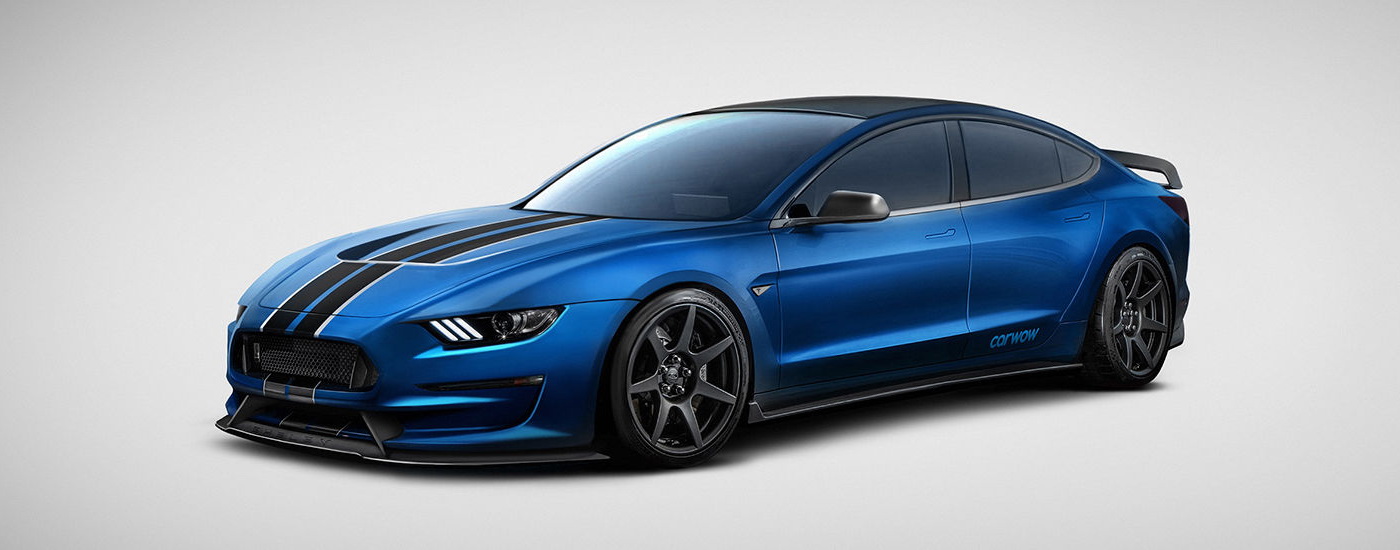It could very well be the best thing since sliced bread (or The Grand Tour), but there’s no way around it: the Model 3’s snout looks bland. We know there’s no reason for it to have air intakes, as the electric motor is at the back, but does it really have to be so boring? Enter the feisty Mustang GT 350R and, suddenly, Tesla’s EV has tons of presence, especially if you add the rest of the aero parts and those rims.