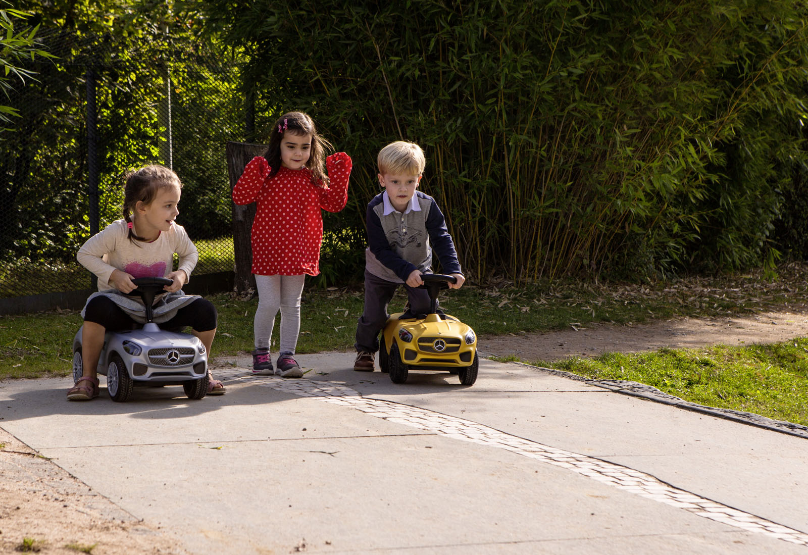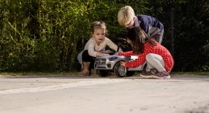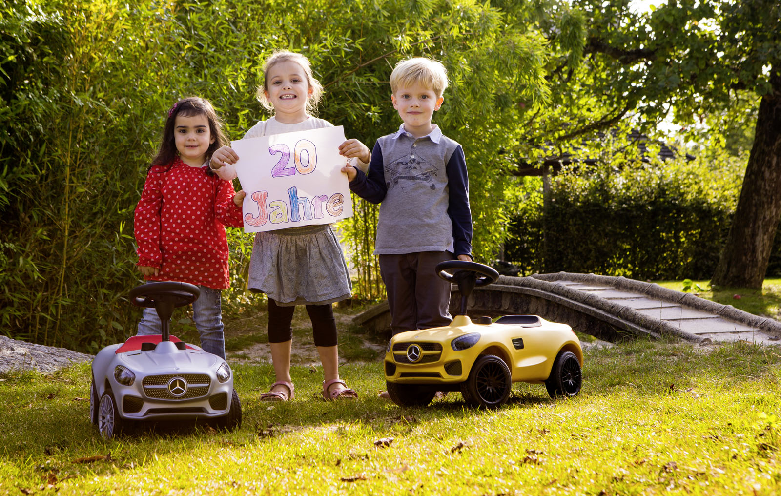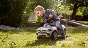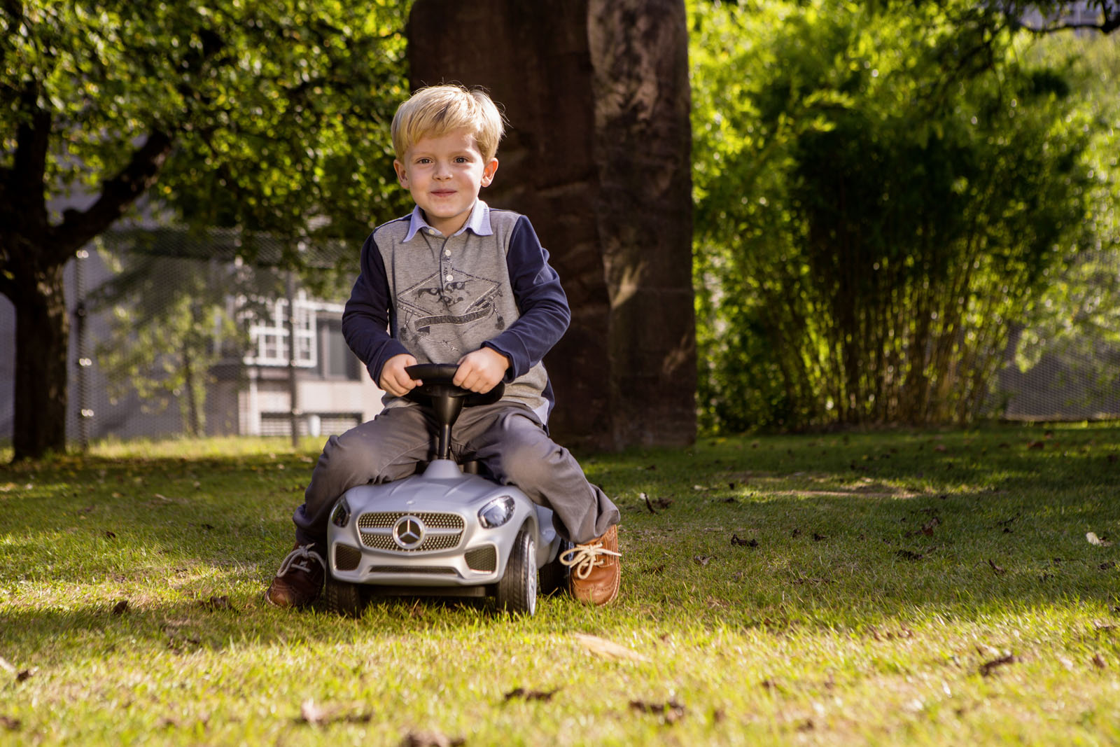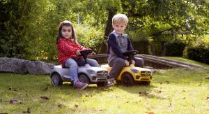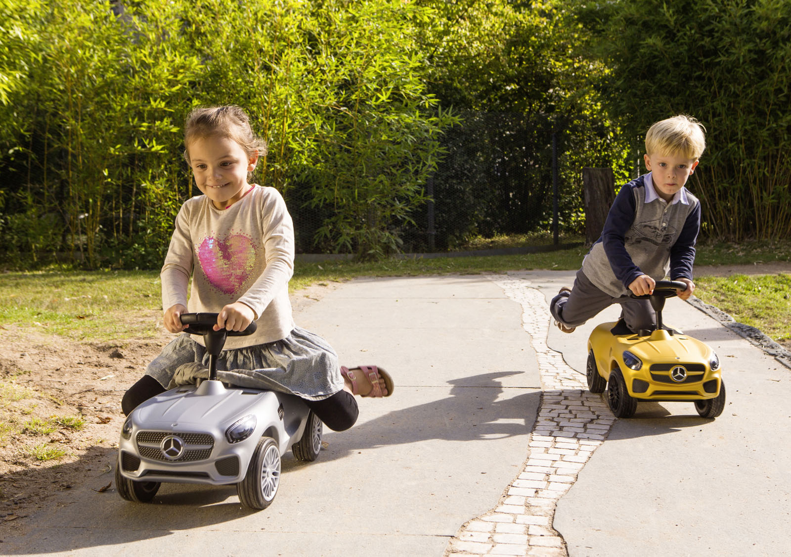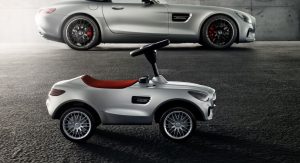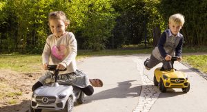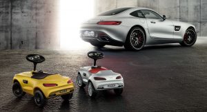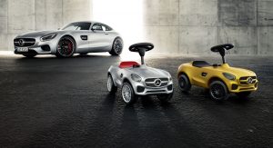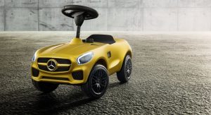 They’re all made for Mercedes in Bavaria by BIG toys. Since 1972, BIG has produced over 17 million Bobby Cars in 100 different variants, including three generations of SLK and the SLS AMG.