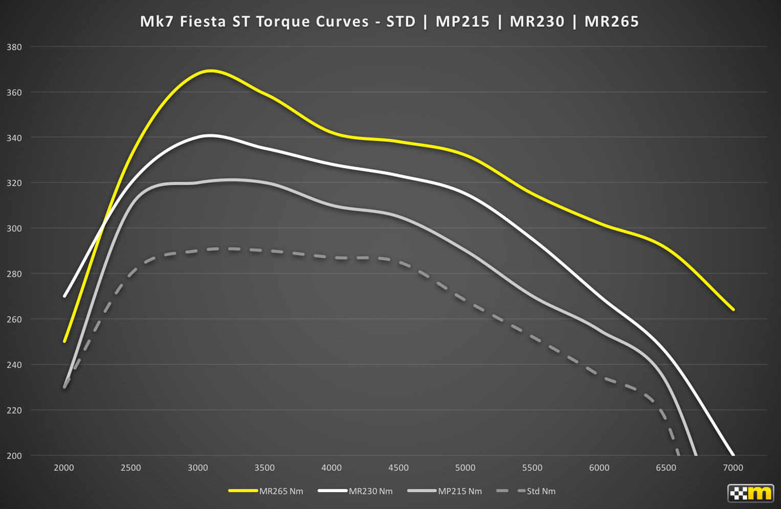 Mountune says the MR265 builds upon the hardware found in the MR230, adding a new hybrid turbocharger, high-flow rear intake pipework, silicone hoses, a larger intercooler and so on. The result is a re-tweaked 1.6-lire EcoBoost capable of boasting, as the name suggest, 265 PS (261 hp) and 273 lb-ft (370 Nm) of torque.