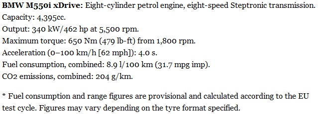 Powered by a 4.4-liter V8 biturbo engine that is capable of pushing no less than 456 horsepower (462 PS) and 479 pound-feet (650 Nm) of torque to all four wheels, the M550i might not be as powerful as the M5 F10 and its 552 HP (552 PS) and 502 lb-ft (680 Nm) of torque, but it can sure beat it in a 0 to 100 km/h (62 mph) drag race.