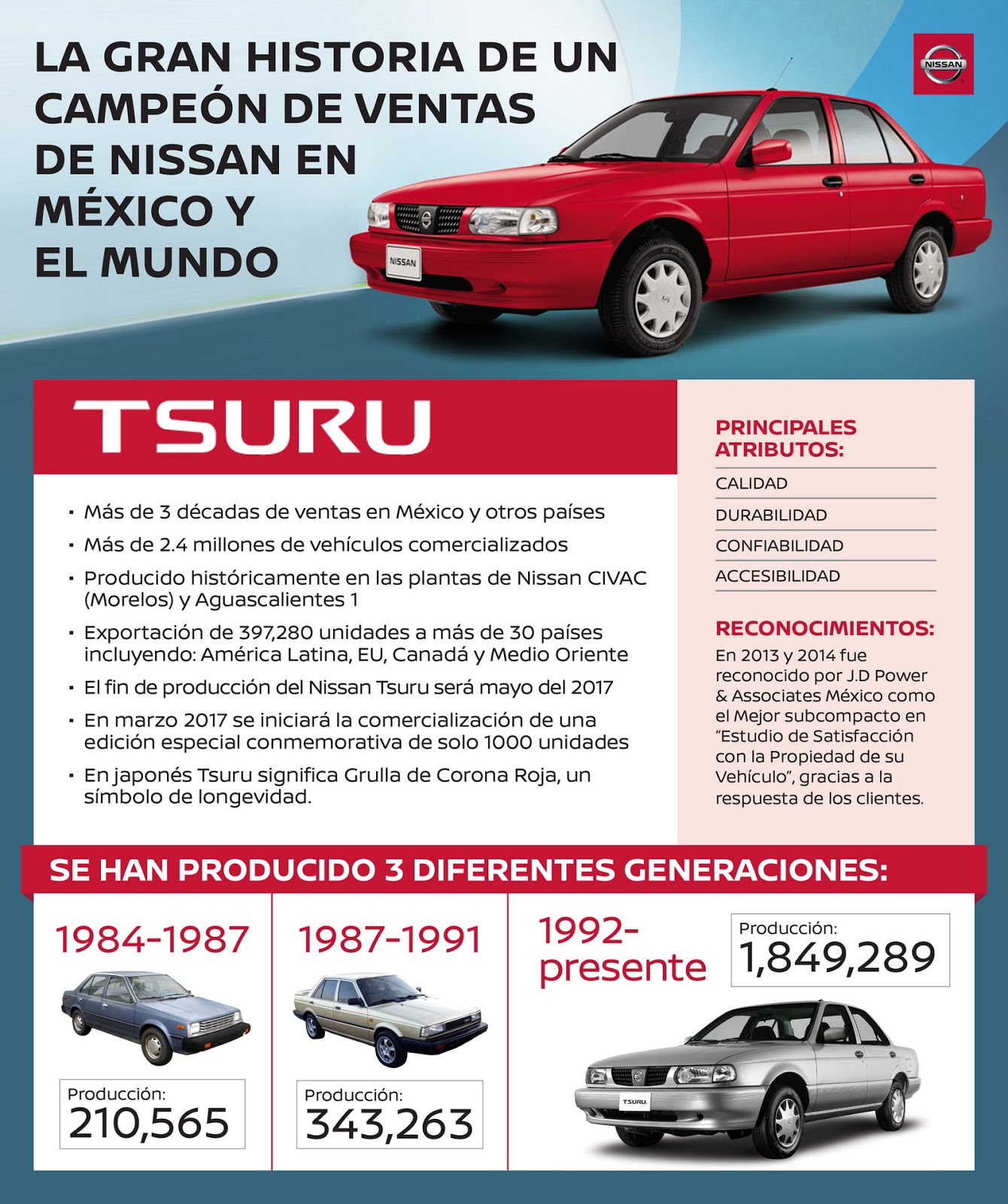 “In the Mexican automotive industry, Tsuru is one of the top sales leaders. The majority of Mexicans have some history that binds us to the Nissan Tsuru. The sedan, which has a huge following, has provided families in Mexico high-quality, reliable and durable transportation since 1984”, said Mayra Gonzalez, president and general director, Nissan Mexicana.