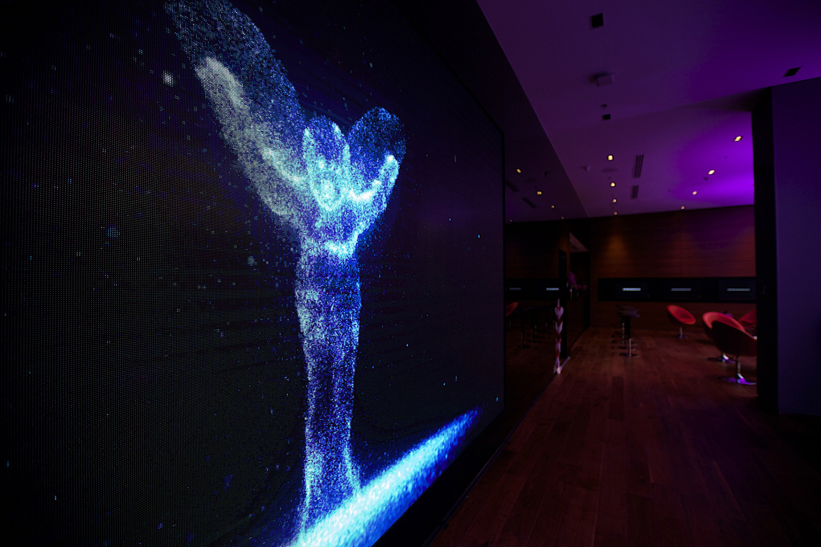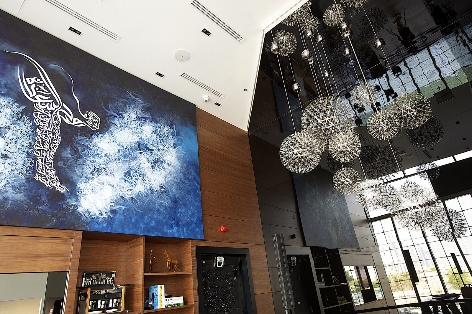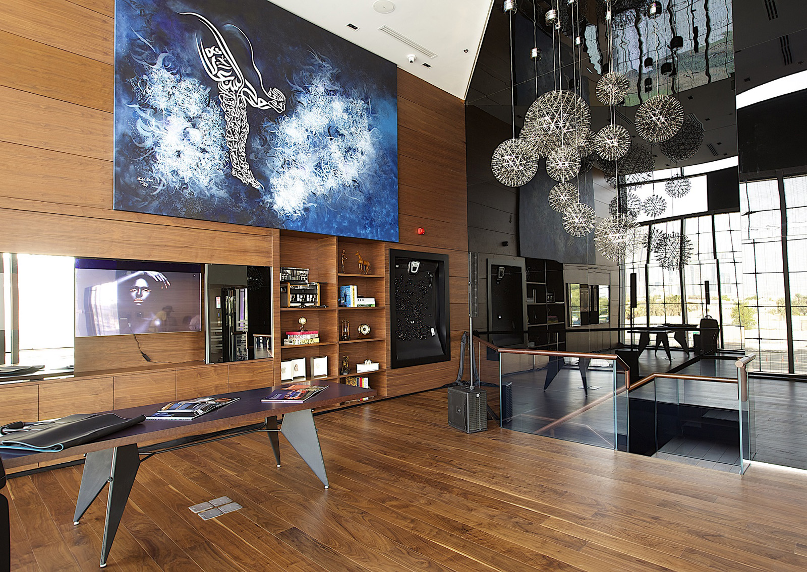 The exterior features giant vectorized pixel-animation screens, and there’s year-round valet parking. All this in addition tot he 10,000-square-foot showroom operated by the same company on Dubai’s Sheikh Zayed Road.