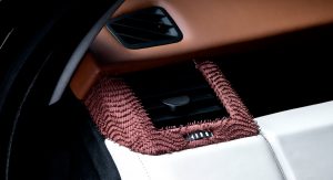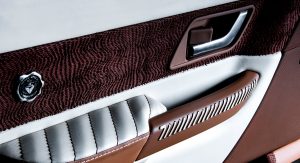 So, a one-of-a-kind cabin was in order, and that’s where Vilner came in. The aftermarket specialist used thinned Alcantara to cover the air vents, central console, doors and sun visors, as well as forming stripes on the seats and roof lining.