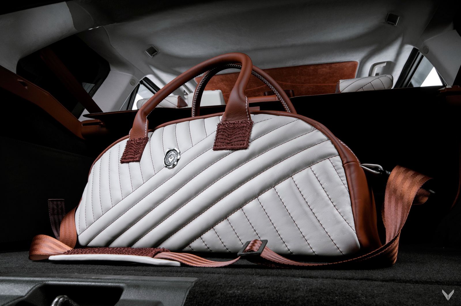 So, a one-of-a-kind cabin was in order, and that’s where Vilner came in. The aftermarket specialist used thinned Alcantara to cover the air vents, central console, doors and sun visors, as well as forming stripes on the seats and roof lining.